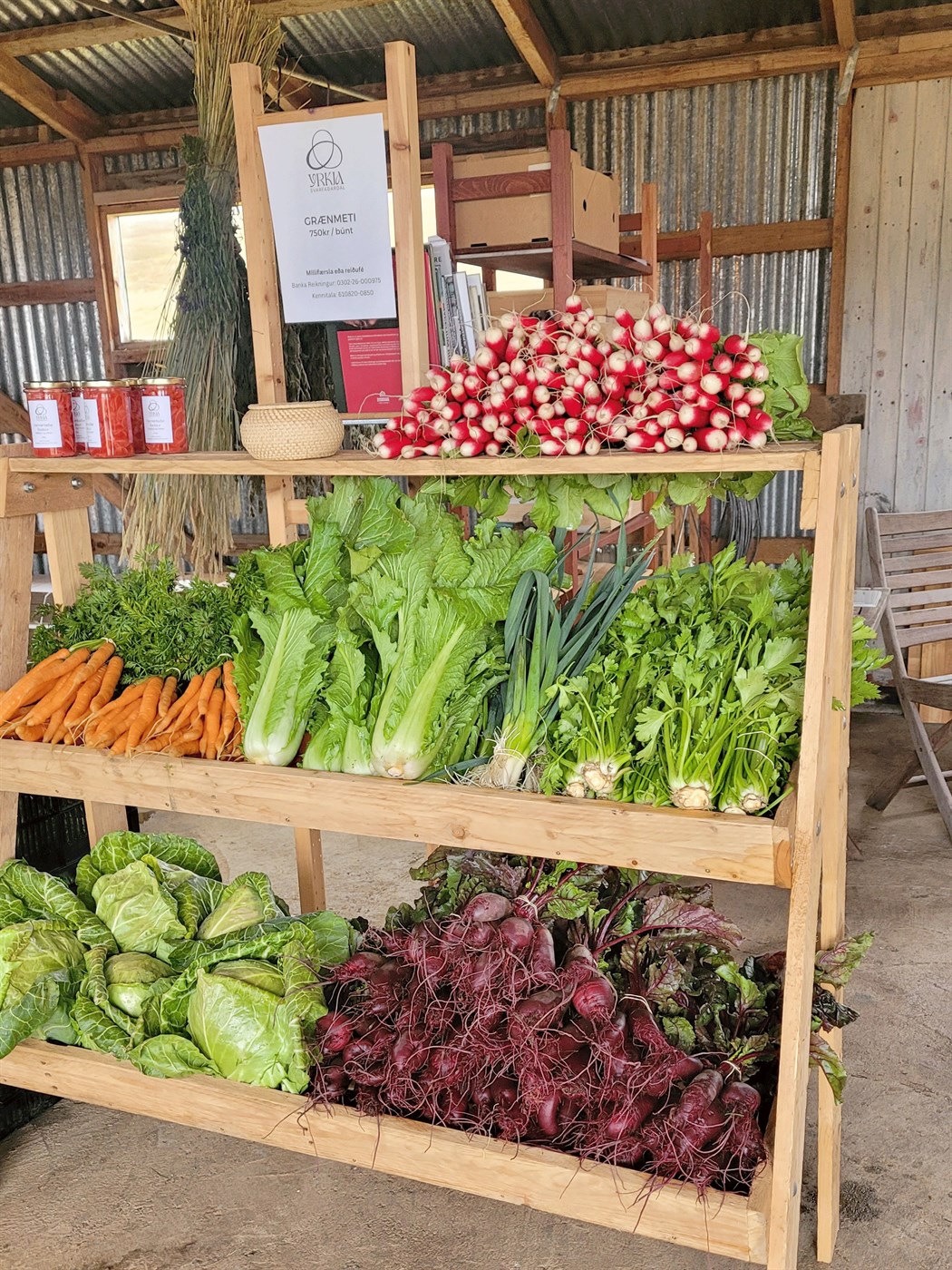 Í Syðra-Holti voru grænmetismarkaðir haldnir í sumar á laugardögum.
