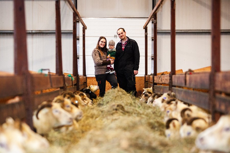 Ástrós Ýr Eggertsdóttir og Pétur Snær Ómarsson tóku við sauðfjárbúinu á Hrísum í Flókadal í Borgarfirði í byrjun desember á síðasta ári. Þar bjuggu áður Þórdís Sigurbjörnsdóttir og Dagbjartur Dagbjartsson. Ástrós er þrítug og Pétur 24 ára og saman eiga þau eins árs dóttur, Berglindi Lilju. Leið unga parsins í búskap hefur ekki gengið þrautalaust fyrir sig, en á árinu 2024 fluttu þau fimm sinnum og voru Hrísar önnur jörðin sem þau tóku við.