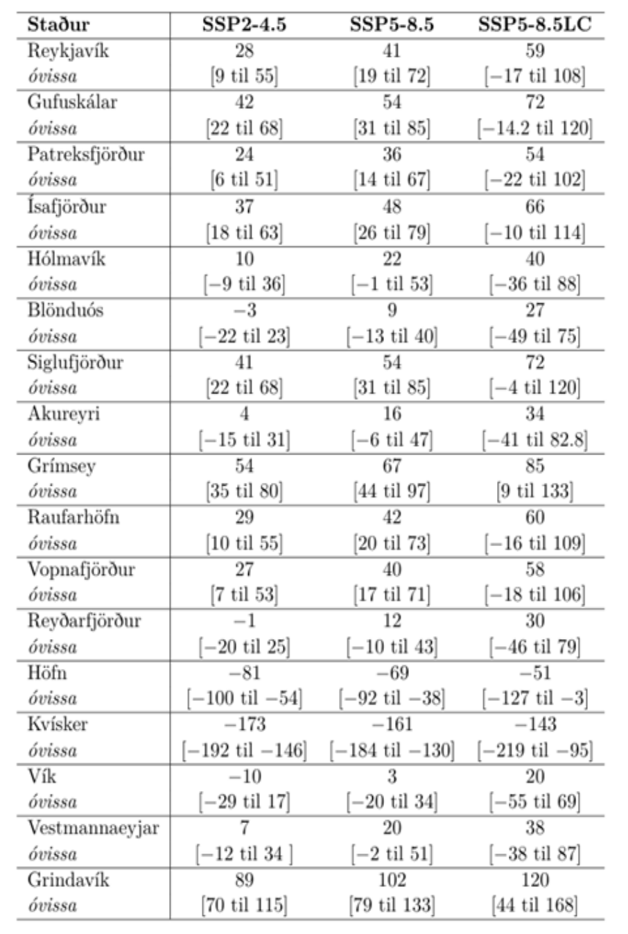 „Þetta getur haft veruleg áhrif á strandsvæði Íslands, sérstaklega þar sem landsig er til staðar. Í sumum tilvikum gæti sameiginleg áhrif landsigs og sjávarhækkunar þýtt allt að 1,7 metra hækkun fyrir lok þessarar aldar við suðvestur- og vesturströnd landsins til aldamóta, sé horft á efri óvissumörk og verstu sviðsmynd.“