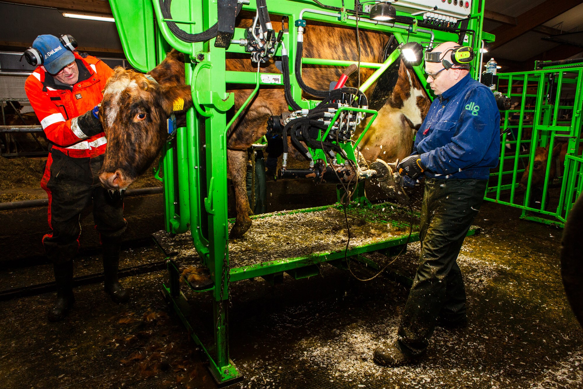 Birkir Þrastarson er verktaki í kúaklaufskurði hjá Búnaðarsambandi Suðurlands. Hann segir þumalputtaregluna erlendis vera að klippa klaufirnar á fjögur þúsund lítra fresti. „Eins og hérna á Íslandi ættir þú að klippa á átta mánaða fresti ef meðalnytin í kúnum er í kringum sex þúsund lítra á ári,“ segir hann.