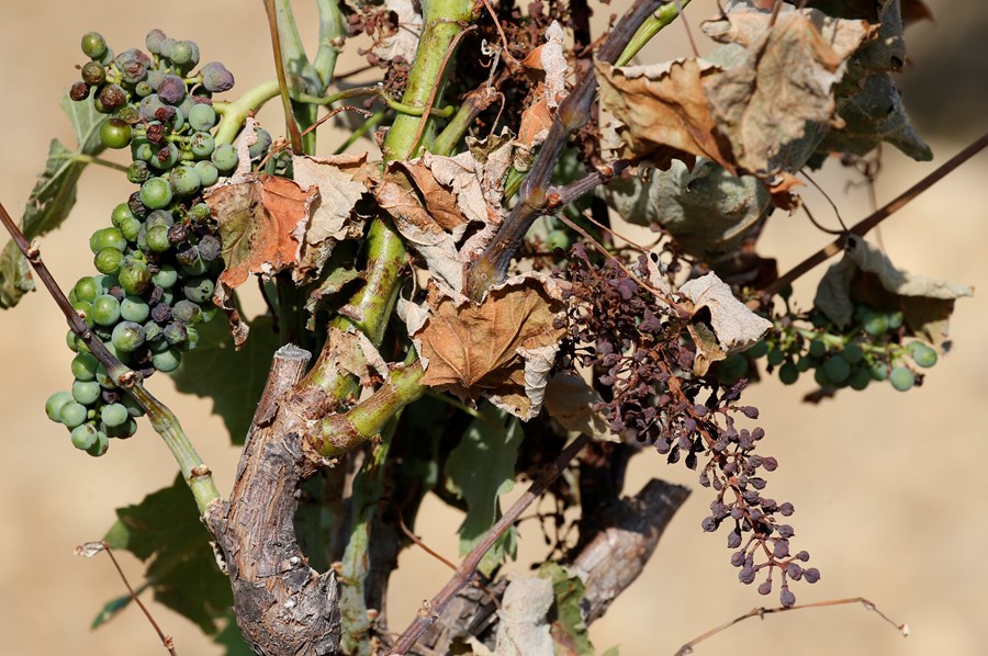 Í framhaldi af vorfrostunum tóku við hitabylgjur þar sem hitinn fór yfir 40° Celsíus í suðurhéruðum landsins og plönturnar sviðnuðu illa í hitanum. Regn í ágúst dró víða nokkuð úr skemmdunum en olli meiri skemmdum annars staðar þar sem úrkoman breyttist í hagl, meðal annars í Beaujolais-héraði.
