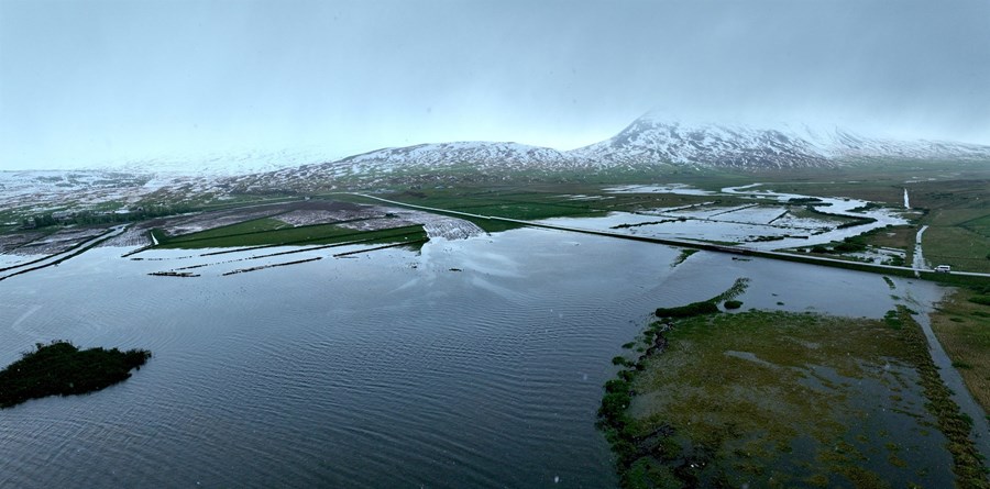 Tjón varð víða á Norðurlandi í norðanáhlaupi í byrjun júní. Annað árið í röð þurftu bændur að smala lambám og koma þeim í skjól. Bóndi segir marga daga af vorhreti óvanalegt en fagstjóri hjá Veðurstofunni telur það ekki vísbendingu um að slík veður verði algengari á komandi árum.