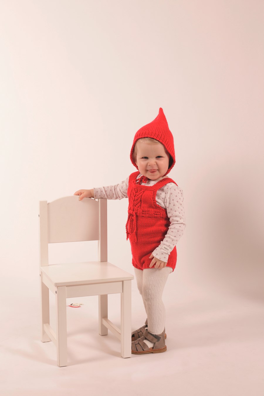 Skriðbuxur / romper, eru mjög vinsælar á litlu krílin. Þessar skemmtilegu skriðbuxur eru fljótprjónaðar, mjög klæðilegar og krúttlegar. Uppskriftin inniheldur einnig sokka og húfu en uppskriftina að því finnur þú á garnstudio.com, uppskrift númer cm-006-bn.