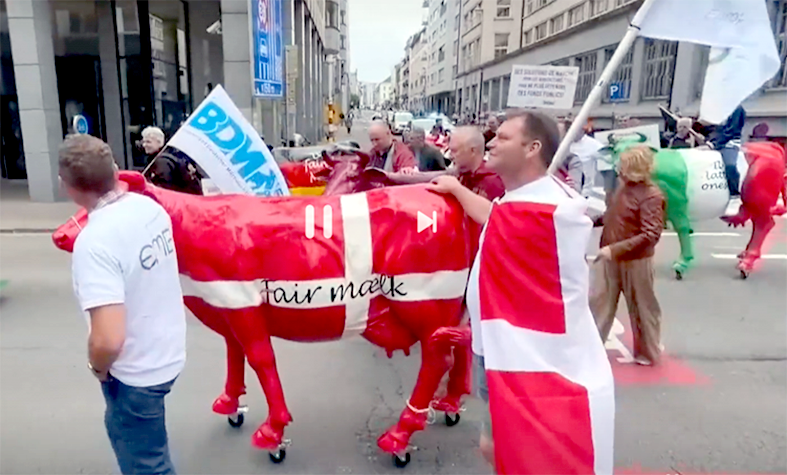 Bændur í mjólkurframleiðslu mótmæltu einnig við höfuðstöðvar Evrópusambandsins í Brussel skömmu fyrir mánaðamót og fóru um stræti með gervikýr á hjólum. Kröfðust þeir laga sem bönnuðu sölu mjólkurafurða á verði undir framleiðslukostnaði.