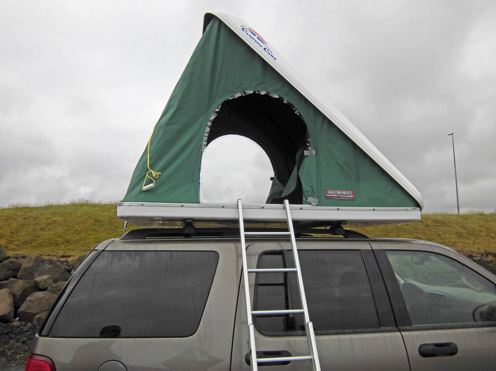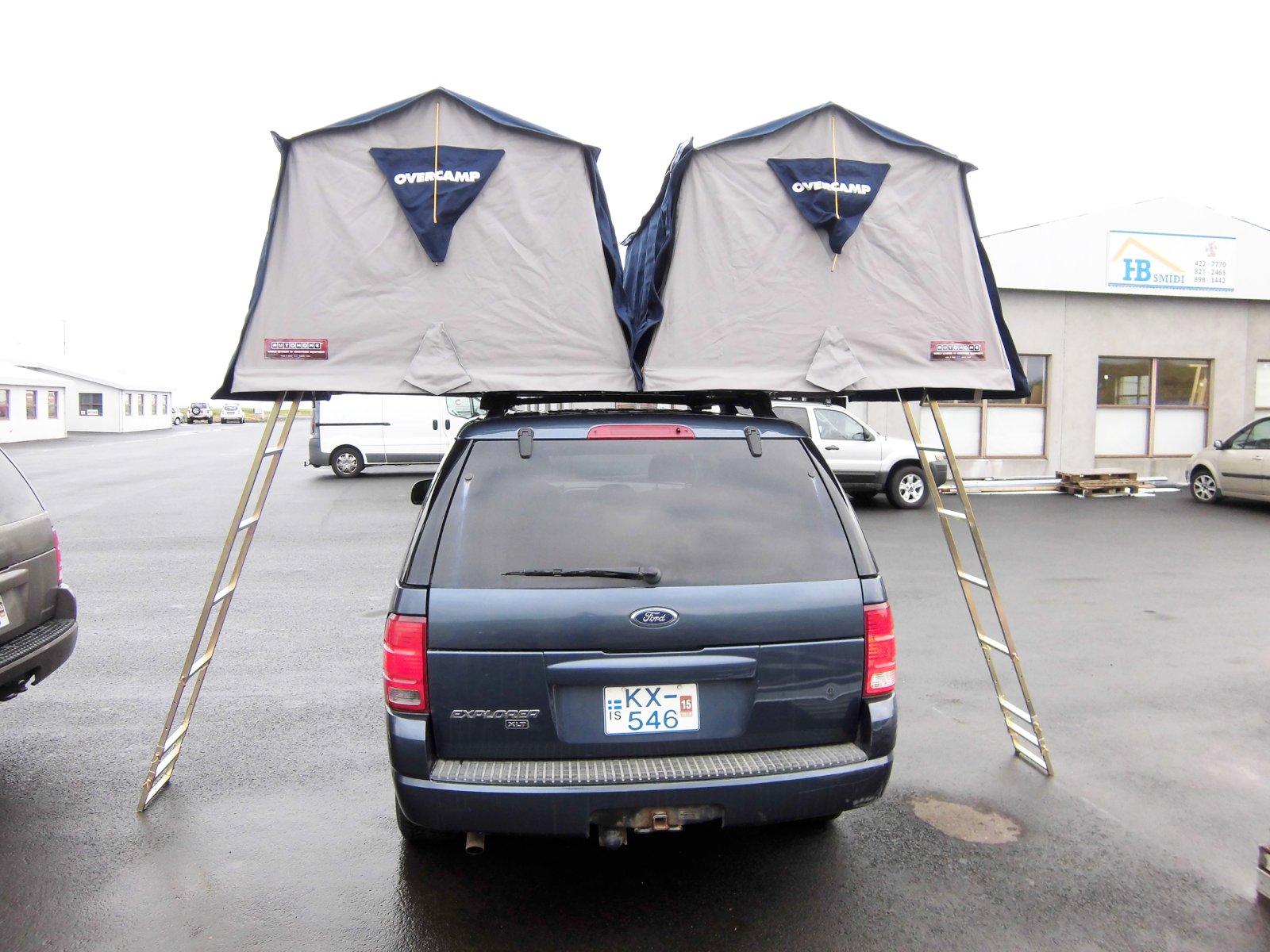 Topptjald.is Njarðarbraut 1 Reykjanesbæ flytur inn tjöld sem ætluð eru á þak bíla. Þegar ég kom á staðinn voru þrír bílar með tjöld á toppnum og af þeim var einn með „tvíbýlistjald“. Svona tjöld eru almennt í kring um fimmtíu kíló að eigin þyngd upp komið. Margir bílar koma með langbogum sem upp eru gefnir fyrir vissa þyngd og var það því óneitanlega vonbrigði að minn bíll er ekki gefin upp fyrir meiri þunga en 80 kg (maður fær ekki allt með kaupum á ódýrasta jepplingnum). Miðað við þá bíla sem ég sá á ferðalögum mínum í sumar með svona tjöld eru margir bílar sem virðast þola tjöld á toppinn, m.a. á Suzuki Vitara, Hummer, Land Rover, Nissan Patrol og einhverjum fleiri bílum.