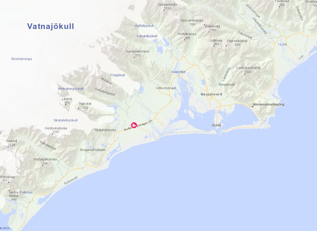 Staðsett í sveit:  Mýrum í Hornafirði.