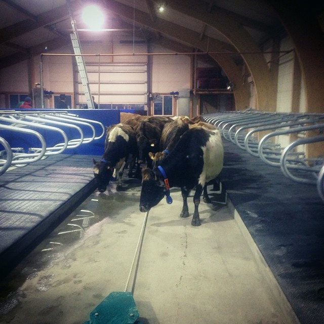 Þessu var þó reddað og þremur dögum síðar var hafist handa við uppsetningu á réttum mjaltaþjón.