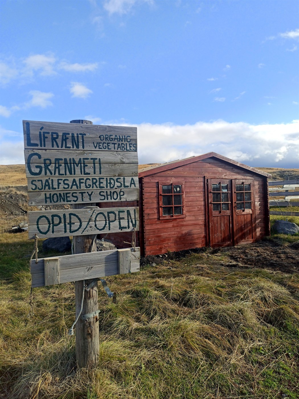 „Ég kaupi jörðina og flyt hingað árið 2015, en þá hafði ekki verið stundaður búskapur hér í þónokkur ár og ekki verið föst búseta. Það voru heldur engin útihús eða slíkt, aðeins íbúðarhúsið. Ég er síðan búin að vera að vinna í því að byggja hér upp rekstur, komin með þrjú óupphituð bogahús, pökkunaraðstöðu og búin að rækta upp land. Einnig er kominn sjálfsafgreiðslukofi niðri við veg þar sem fólk getur keypt afurðir búsins í sjálfsafgreiðslu yfir sumartímann,“ segir Elínborg Erla.