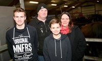 Fjölskyldan í Smjördölum er samhent í búskapnum. Frá vinstri: Jónas Grétarsson, Grétar Sigurjónsson, Niklas Þór  Grétarsson og Anne B. Hansen.