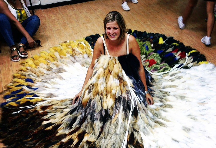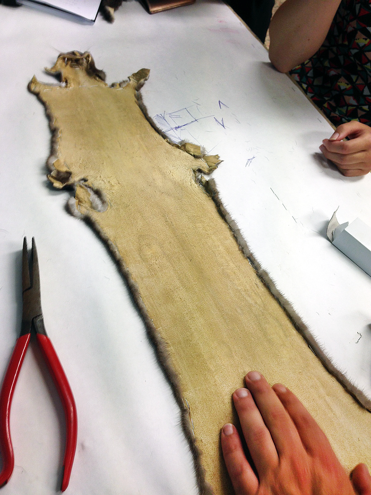 Fyrsti dagur námskeiðsins fór í að kynnast kennurum sem og nemendum. Haldin voru nokkur erindi sem tóku svo að segja allan ferilinn. Allt frá því að tala um aðbúnað dýra á búunum til óhefðbundinna saumaaðferða. Nemendur námskeiðsins voru um 30 og frá mjög mörgum ólíkum löndum og var ég eini nemandinn frá Íslandi. Hópurinn var skemmtilega fjölbreyttur. Í hópnum voru margir hönnuðir eða í hönnunarnámi. Sumir voru bændur eða unnu á minkabúi líkt og ég. Aðrir unnu á saumaverkstæðum og áttu jafnvel sitt eigið verkstæði eða vörumerki.