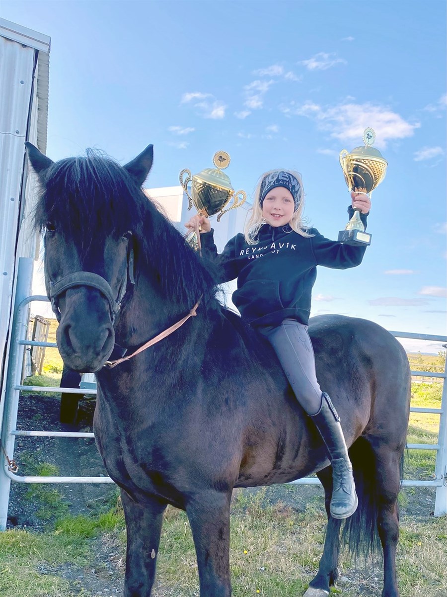 Hvað er það skemmtilegasta sem þú hefur gert: Að fá að fara á hestbak á uppáhaldshestinum mínum, honum Amor frá Reykjavík, og þegar ég keppti á honum á Flúðum síðasta sumar.