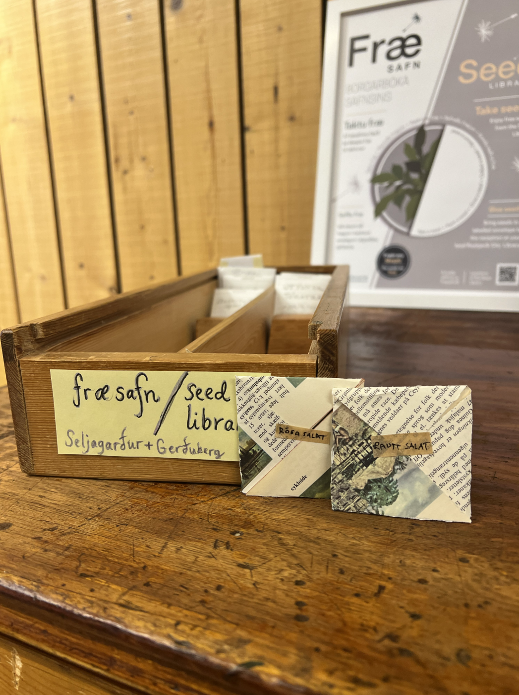 Fræbanki er nú staðsettur í bókasafninu og segir Svanhildur frá því að falleg kommóða, merkt fræbankanum, sé úr geymslu safnsins, áður ætluð undir skjöl, en tilvalið að geyma þar ýmislegt smálegt.