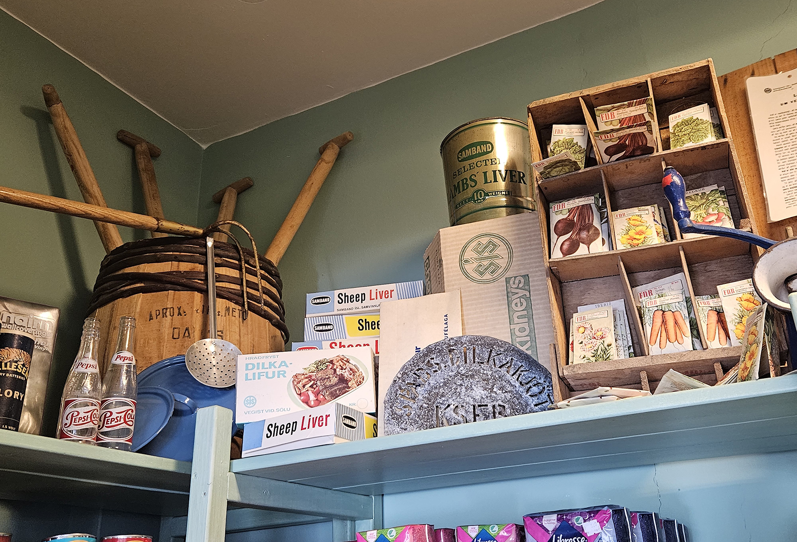 Í gömlu verslunarhúsi á Breiðdalsvík, Kaupfjelaginu, er lítil matvöru- og gjafavöruverslun, ásamt notalegu kaffihúsi þar sem meðal annars fæst óskaplega góð gulrótarkaka. Þarna hafa verið nokkrar búðir gegnum tíðina og gengið á með skini og skúrum í verslunarrekstrinum. Við tiltekt fyrir um áratug fannst alls konar dót á háaloftinu, svo sem sláturhússföt, skór og gamlir verðlistar frá Sambandinu sem sýndu hvert vöruverð var áratugum. Í efstu hillum Kaupfjelagsins má líta gamlar vörur sem voru til sölu um miðja síðustu öld eða svo. Eflaust yljar það einhverjum um hjartarætur að sjá ýmislegt sem áður var til á hverjum bæ en hefur orðið nútímanum, þeirri skrítnu skepnu, að bráð.