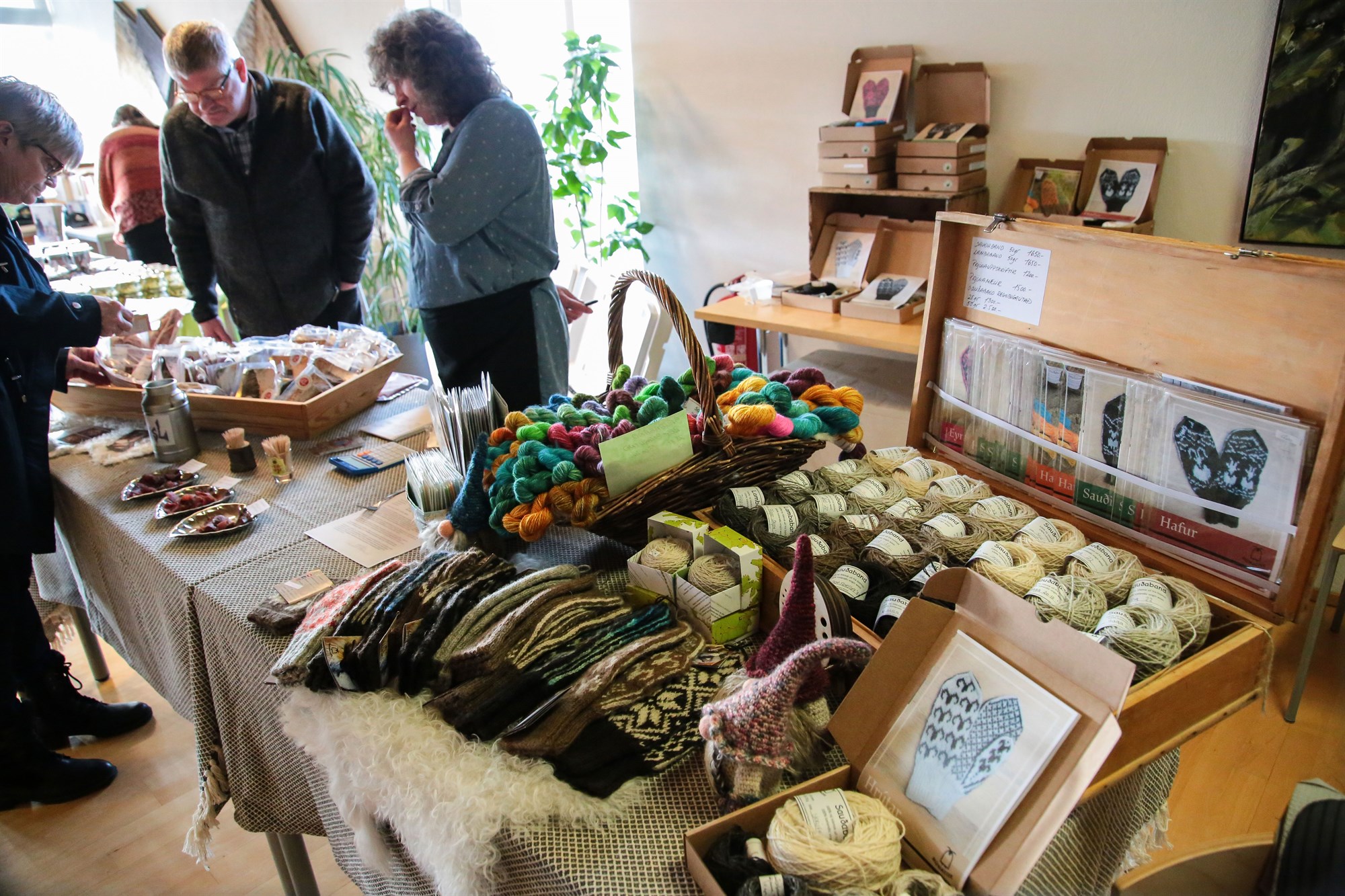 Á markaðinum mátti meðal annars finna geita-, lamba- og ærkjöt í ýmsum myndum, pylsur, paté, kæfur, ostar, sinnep, síróp og hlaup, krydd, hvítlaukssalt, sveppasalt, harðfisksnakk, sultur og marmelaði, te, drykkir úr íslenskum jurtum og skógarafurðum, sælkerapoppkorn, frostþurrkað sælgæti, bakkelsi, konfekt og ís. Bændur og smáframleiðendur eru með ýmislegt annað handverk á sínum prjónum en matvæli og á markaðnum mátti einnig finna sápur, krem, gærur, sauða- og geitaband, uppskriftir og prjónapakka.