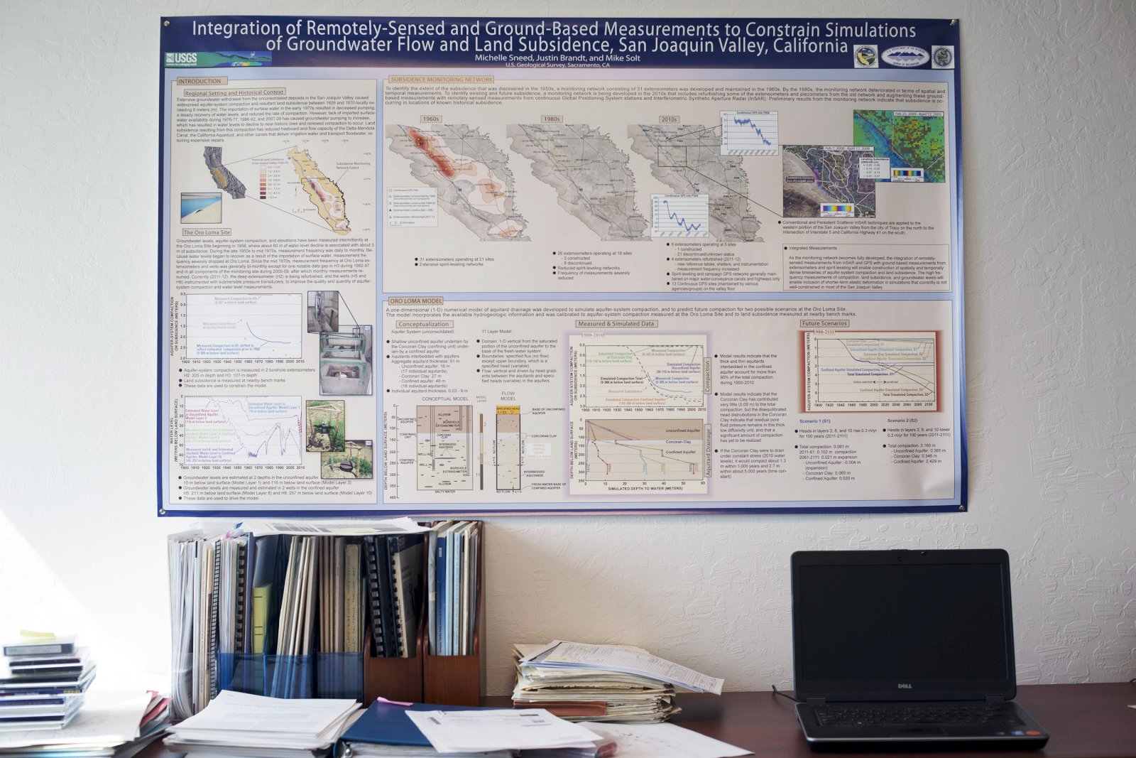 Á skrifstofu Michelle Sneed, sérfræðings í jarðsigi hjá Jarðfræðikönnun Bandaríkjanna (USGS), hangir kort með upplýsingum um eitt alvarlegasta vandamál landbúnaðar í Central Valley. Vandann má rekja til aukinnar grunnvatnsdælingar á fyrri hluta 20. aldar, þó svo meirihluti áveituvatns komi enn frá snjóbráð Sierra Nevada-fjallanna. Með aukinni ræktun vatnsfrekra nytjaplantna jókst dæling grunnvatns allan ársins hring, en sér í lagi á þurrkatímum líkt og ríkt hefur undanfarin áratug í Kaliforníu. Þegar unnið var að byggingu núverandi vatnsveitukerfis upp úr miðri síðustu öld leiddu mælingar jarðvísindamanna í ljós umfangsmikið jarðsig. Dæling úr grunnvatnskerfi umfram náttúrulega endurnýjun leiðir til samfalls sandkorna og tilheyrandi lækkunar gunnvatnsstöðu. Grunnvatnskerfið varð til á milljónum ára með framburði úr Sierra Nevada-fjöllum, en með aukinni dælingu hefur sjálf jörðin undir ökrum dalsins lækkað, sandkorn þjappast saman og eiginleikar grunnvatnskerfisins til að halda vatni glatast til frambúðar. Frásagnir af jarðsigi komu fyrst frá bændum á þriðja áratug síðustu aldar sem sögðu mjólkurbílinn hverfa sjónum á vegkafla þar sem hann hafi áður sést.