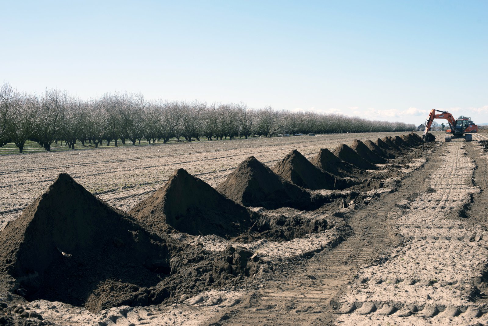 Dave Phippen keyrir glænýjan hvítan RAM pallbíl inn á athafnasvæði Travaille og Phippen, fjölskyldufyrirtæki með 60 heilsárs starfsmenn, 1.500 ekrur af möndlutrjám og nýlega vinnslustöð sunnan við Manteca. Innandyra sitja mexíkóskar konur við færiband og taka út steina og skemmdar möndlur sem nýlegu róbótakerfi yfirsást, en karlmenn vinna við að yfirfara vélabúnað fyrir haustvinnsluna. Dave ekur pallbílnum inn á milli trjánna sem blómstra hvítu í febrúar og skapa draumkennt gatnakerfi, og þylur um leið tölfræði um vöxt möndluræktar upp úr sjötta áratugnum en ríkið framleiðir nú 80% af möndlum á heimsmarkaði.