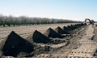 Við keyrum meðfram vatnsskurðum sem hver um sig nægir 40 ekrum, en ólíkt bændum í suðri hefur dæling grunnvatns enn ekki leitt til verulegs jarðsigs í þessum hluta dalsins. Lækkun grunnvatnsstöðu segir hann nema sex metrum á 30 árum, nú í 17 metrum undir yfirborði. Hann leggur meiri áherslu á hversu góð núverandi nýting vatns er með notkun dropavökvunar, og segist nota þriðjung þess vatns sem foreldrar hans notuðu á hverja ekru. Góð nýting vatns sé fjárhagslega hagkvæm fyrir bændur auk þess að tryggja skynsama nýtingu á takmarkaðri auðlind, en hann segir einnig skorta á nýjar vatnsveituframkvæmdir í ríkinu.
