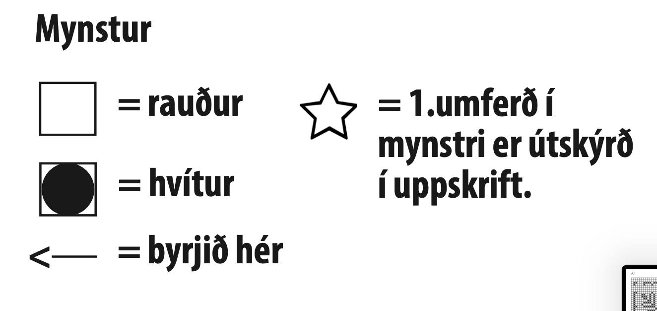 Prjónið annan pottalepp á sama hátt, nema skiptið um lit þannig að mynsturliturinn verði rauður og grunnlitur hvítur.