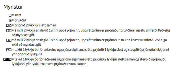 Mynsturteikning sýnir allar umferðir í mynstri séð frá réttu.