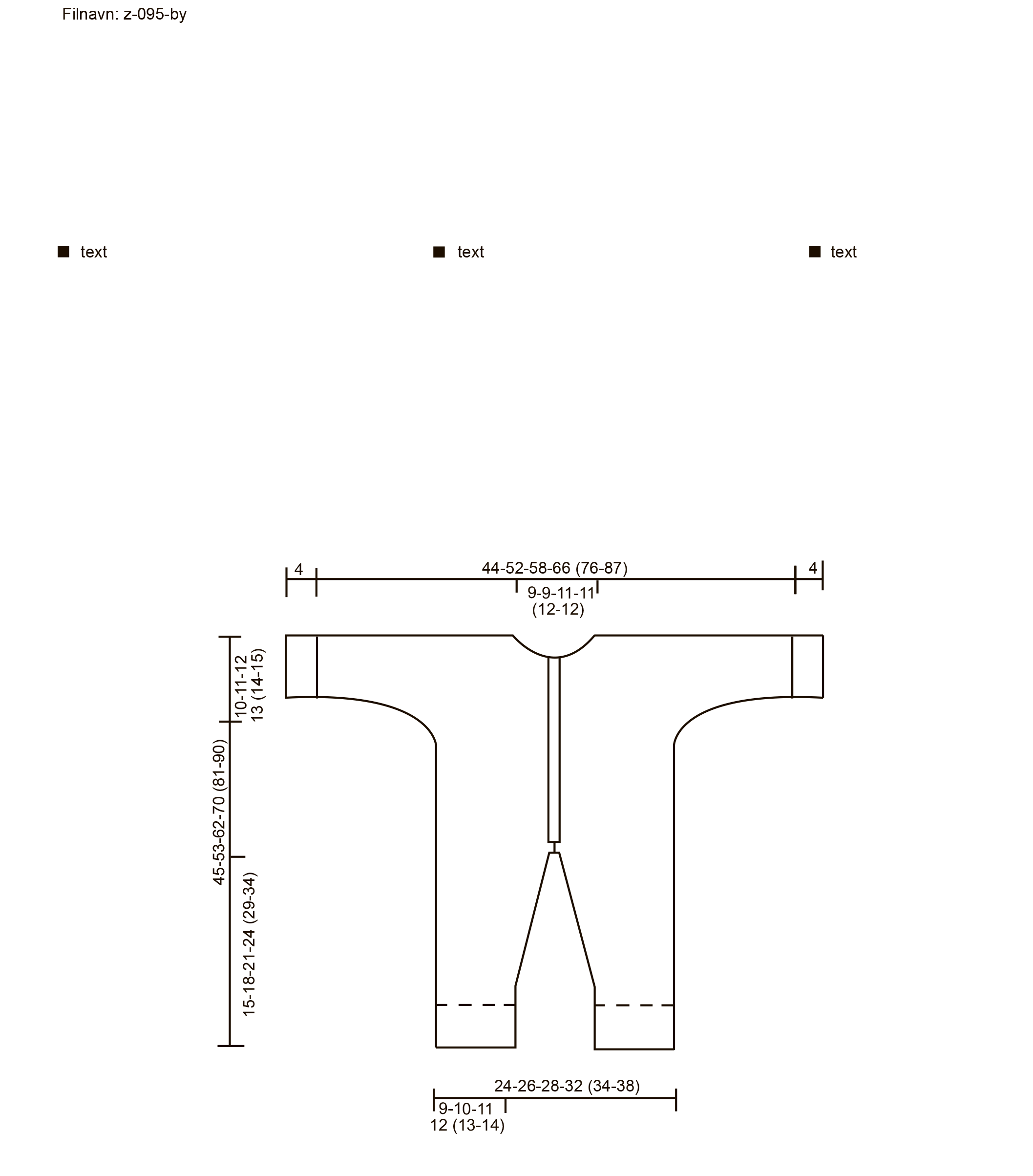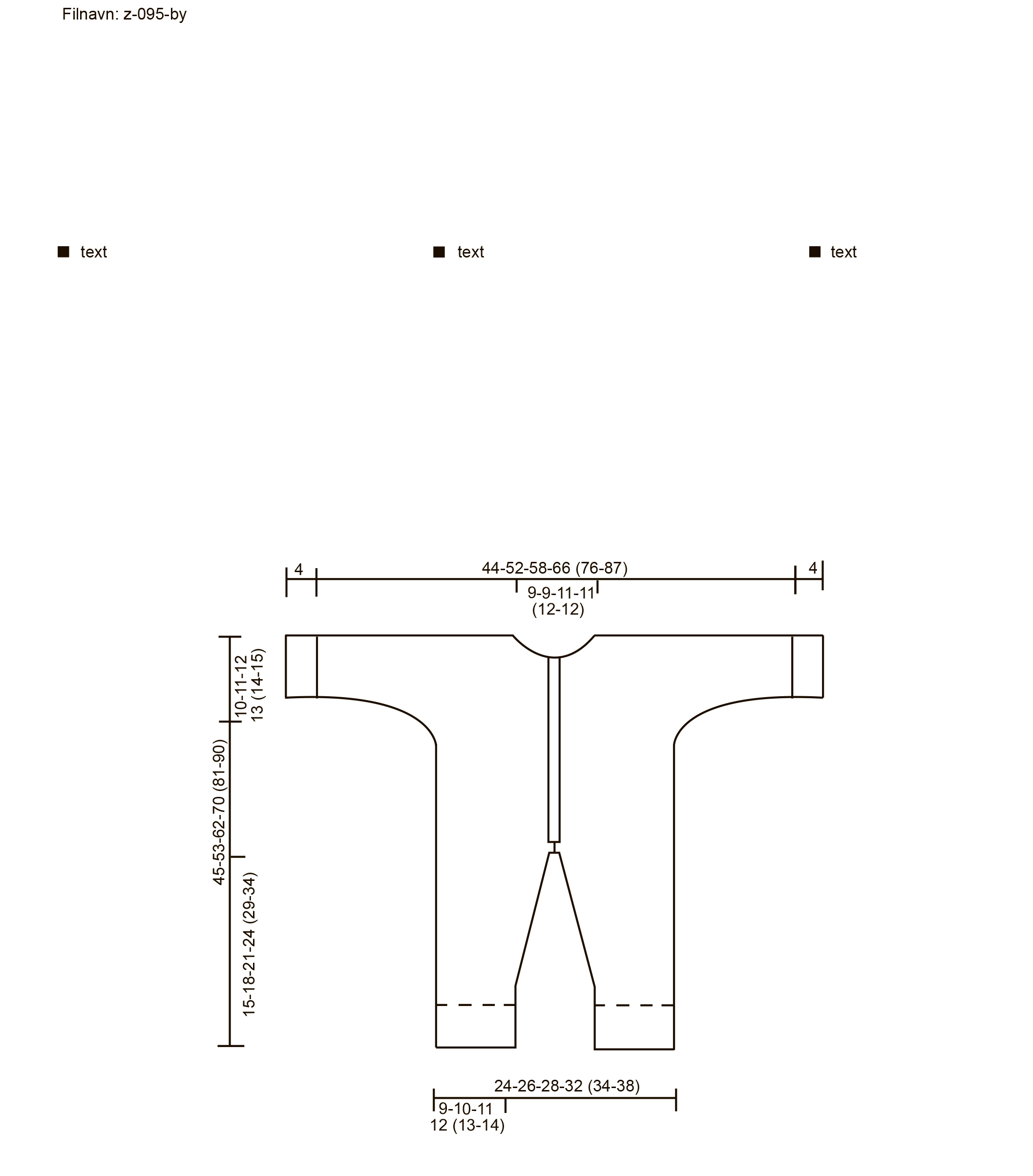 = 40-44-48-54 (58-64) l. Haldið áfram með garðaprjón og rendur – JAFNFRAMT eru fitjaðar upp nýjar l í lok hverrar umf á hvorri hlið fyrir ermar: 3 l 2-1-2-3 (1-2) sinnum, 5 l 1-1-1-1 (2-2) sinnum, 7 l 0-1-1-1 (2-2) sinnum og síðan 6-7-7-8 (9-12) l 1 sinni = 74-88-98-112 (130-148) l á prjóni. Þegar stykkið mælist 44-52-61-69 (80-89) cm fellið af miðju 16-16-18-18 (20-20) l af fyrir hálsmáli og hvor öxl/ermi er prjónuð til loka fyrir sig. Prjónið 2 umf til viðbótar yfir þær 29-36-40-47 (55-64) l á hvorri hlið – fellið LAUST af, stykkið mælist ca 45-53-62-70 (81-90) cm.