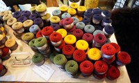 Mesta athygli okkar vakti hins vegar Uradalebandið. Ullin er frá þrem lífrænt vottuðum sauðfjárbýlum sem búa með hjaltneskt sauðfé, margir tónar af sauðalitum og sömuleiðis band litað með lífrænt vottuðum aðferðum. Þetta band er ætlunin að flytja inn og selja í Þingborg.