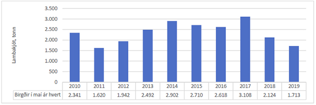 Á undanförnum árum hefur birgðastaða breyst mikið bæði vegna áhrifa fækkunar vetrarfóðraðra áa á dilkakjötsframleiðslu en einnig vegna átaks í útflutningi haustin 2016 og 2017. Ekki hefur verið sérstakt átak í útflutningi frá þeim tíma. Útflutningur af framleiðslu haustsins 2018 var í lok maí 3.300 tonn samanborið við 3.500 tonn af framleiðslu haustsins 2017 og 2.400 tonn af framleiðslu 2016 á sama tíma. Birgðir nú í lok maí voru um 1.700 tonn samanborið við 3.100 tonn í lok maí 2017. Birgðir á þessum árstíma hafa raunar ekki verið jafn litlar síðan árið 2011 en það haust hækkaði verð til bænda um 20% milli ára.