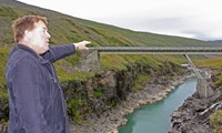 „Kláfurinn var okkar helsta samgöngutæki yfir vetrar­mánuðina, ég þekkti ekki annað í mínum uppvexti, við fórum ekki öðruvísi yfir Jökulsá á veturna en að draga okkur yfir á kláfnum,“ segir Stefán Ólason, bóndi á Merki í Jökuldal.