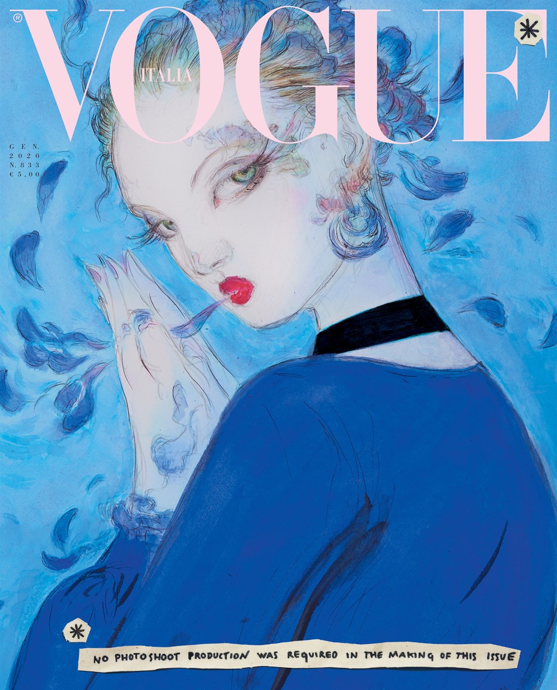 Áhuga vakti forsíða fyrsta tölublaðs ítalska Vogue árið 2020 – sem var teikning, auk þess sem áhugasamir lesendur komust að því að í blaðinu var ekki að finna eina einustu ljósmynd. Í yfirlýsingu frá þeim kom fram að með þessu móti væri ekki verið að notast við raunverulegan fatnað, notkun á myndavélum eða öðru sem skilur undantekningarlaust eftir sig slóð umhverfiskostnaðar.