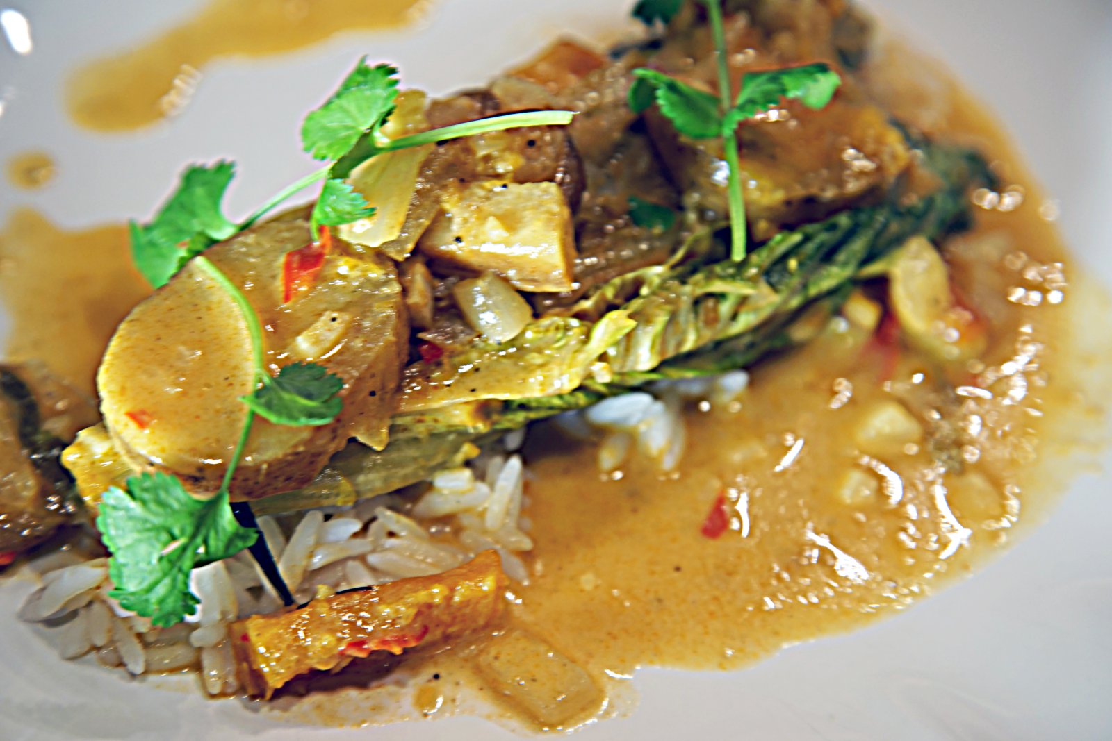 Grænmetisréttur með kókosmjólk og rauðu karrý
