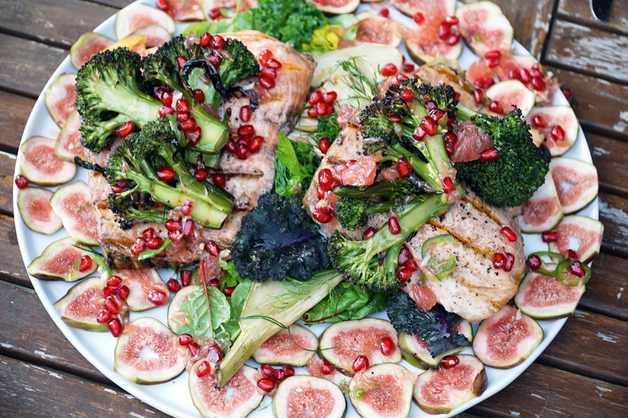 Takið laxinn af  grillinu og toppið með smá BBQ-sósu. Skreytið með fallegu meðlæti og jafnvel Kimchi, gerjuðu hvítkáli að kóreskum hætti, og salatblöðum til að setja meðlætið og fiskinn inn í svo hægt sé að borða eins og vefju með höndunum.
