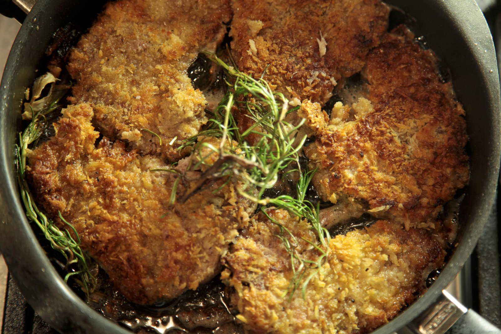 Kótiletturnar þerraðar, hluti af fitunni e.t.v. skorinn burt (einkum af rifinu) og barðar létt með buffhamri. Egg og mjólk léttþeytt saman og brauðmylsnan krydduð með pipar og salti ásamt kryddjurtum. Líka hægt að steikja nokkra stilka af rósmarín til að gefa gott bragð í fituna. Smjörið brætt á stórri, þykkbotna pönnu. Kótilettunum velt upp úr eggjablöndunni og síðan brauðmylsnunni. Brúnaðar á báðum hliðum við góðan hita en síðan er hitinn lækkaður og kótiletturnar steiktar áfram við hægan hita í 8–10 mínútur. Snúið einu sinni. Þá eru þær teknar af pönnunni og raðað á heitt fat. Meira smjör e.t.v. brætt á pönnunni og borið fram með léttsteiktu grænmeti.