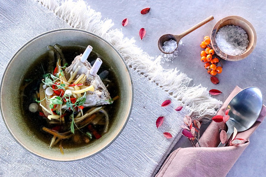 Þessi kjötsúpa er mjög ólík hinni klassísku kjötsúpu og leitað er bragða í austurlenskri matargerð. Hér er tilvalið fyrir þá djörfu að leika sér enn frekar með bragðið og breyta og bæta eftir smekk og ævintýragirni og t.d. nota ögn af kóresku gouchang mauki með í súpuna. Svo má líka nota aðra bita en súpukjöt, t.d. gúllas, og stytta þannig eldunartímann. Byrjið á að setja kjöt og vatn í pott, stillið á miðlungshita og bíðið eftir suðu.