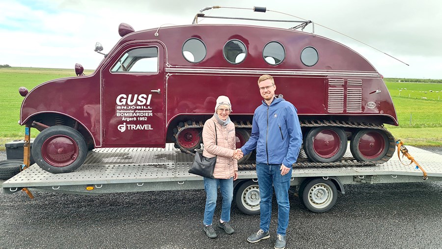 Fjölskylda Guðmundar Jónassonar hefur afhent snjóbílinn Gusa til varðveislu á Skógasafni.