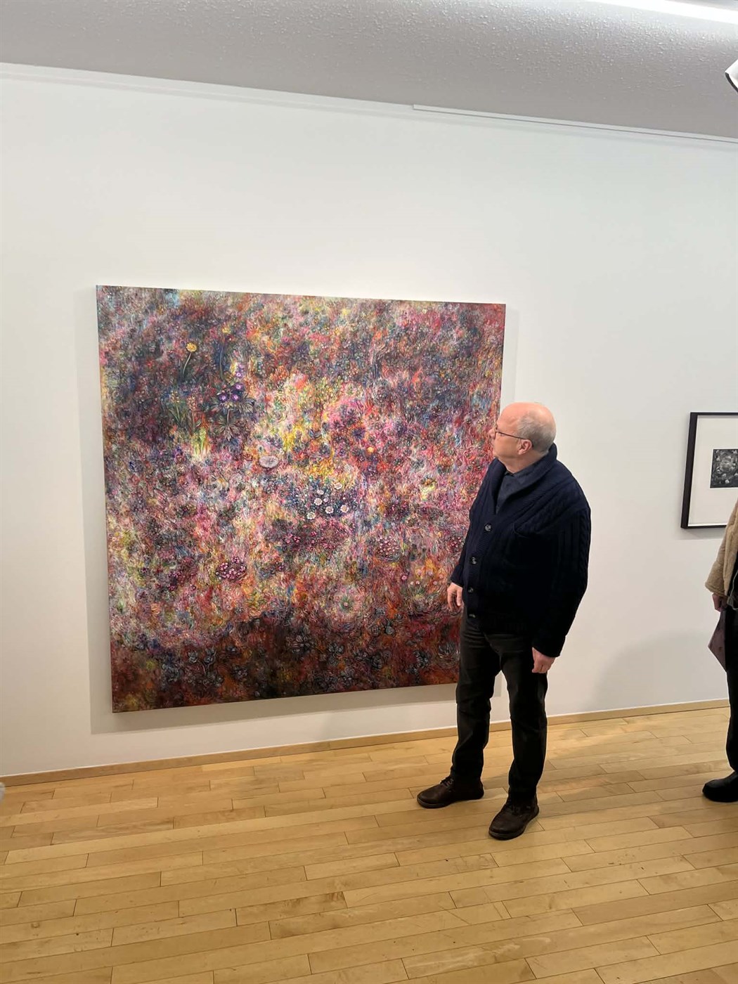 Gullnum roða slær á jarðargróðurinn sem Eggert málar í verkum sínum á þessari sýningu, hvort sem það er aftanroði eða árdagsroði, morgunroði, kvöld- eða næturroði. Orðið roði er mildara en rauður. Það hefur heldur ekki jafnsterkar pólitískar skírskotanir, þótt roðinn í austri gefi ákveðna hugmyndafræði til kynna. En þetta eru ekki pólitískar myndir. Þær miðla umfram allt birtu og yl. Blómahafið er um leið eins konar eldhaf. Logandi kvöldhiminn. Morgunbjarmi.