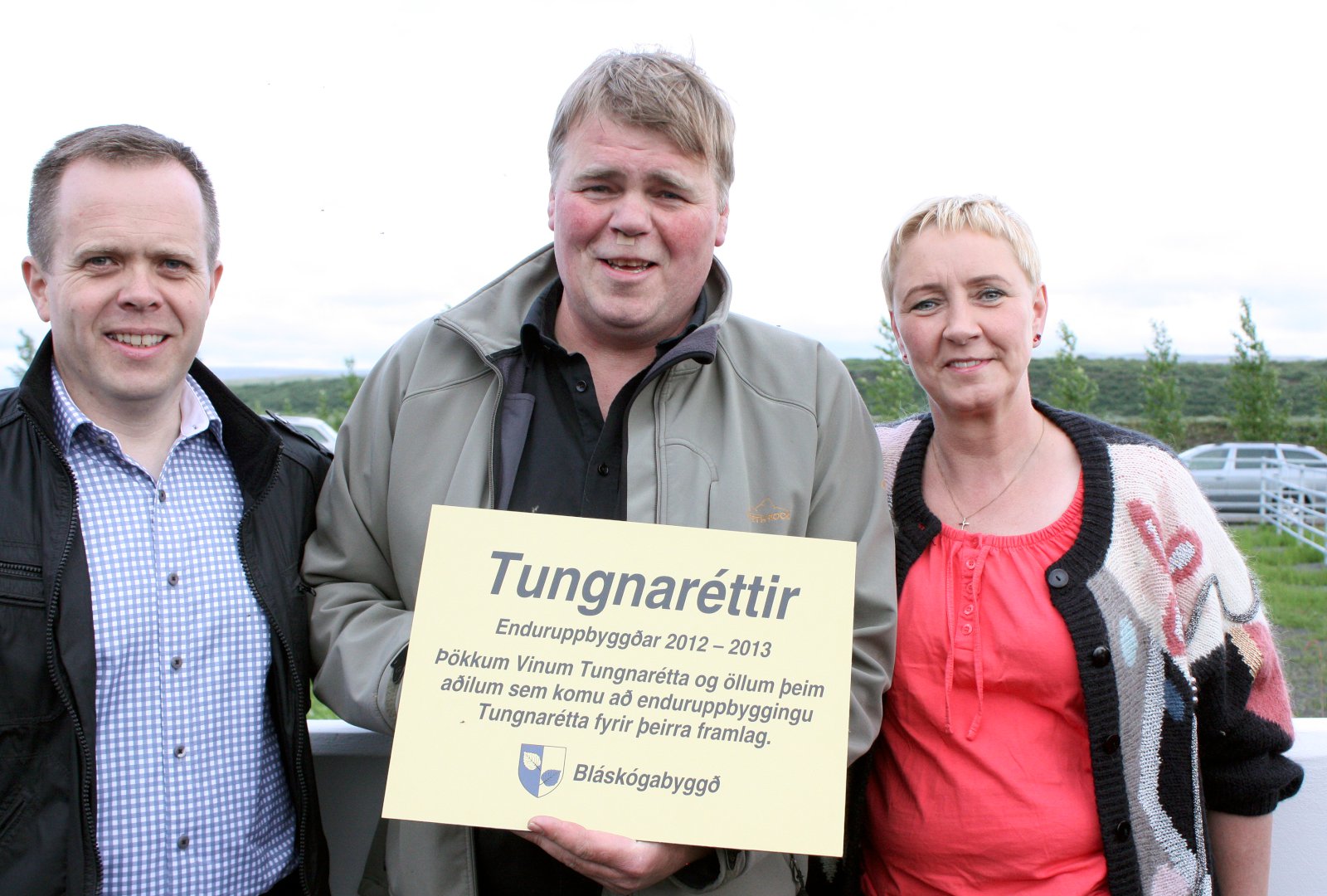 Vinir Tungnarétta er hópur fólks úr Biskupstungum og víðar, sem hefur endurgert réttirnar á síðustu tveimur árum, allt unnið í sjálfboðavinnu. Stjórn félagsskaparins hélt vel utan um allar þær vinnustundir sem unnar hafa verið í sjálfboðavinnu en þær eru samtals 2.750 klst. Þá hefur mikil vélavinna verið gefin og samkvæmt bókhaldi félagsins voru þær samtals 627 klst. Efni hefur verið gefið af einstaklingum og fyrirtækjum fyrir tæpar þrjár milljónir. Einnig hafa einstaklingar gefið fjármuni beint til félagsins. „Ég er mjög ánægður með enduruppbyggingu réttanna og þá miklu vinnu, sem fólk hefur lagt á sig, það er stórkostlega að finna samtakamáttinn í sveitinni og langt fyrir utan hana, nú á Bláskógabyggð réttirnar og mun sjá um þær um ókomna tíð,“ segir Brynjar Sigurðsson, formaður Vina Tungnarétta og bóndi á Heiði.