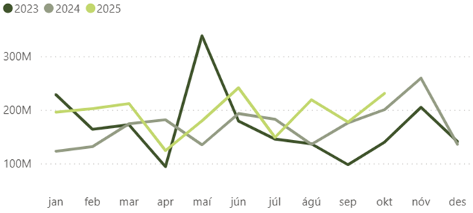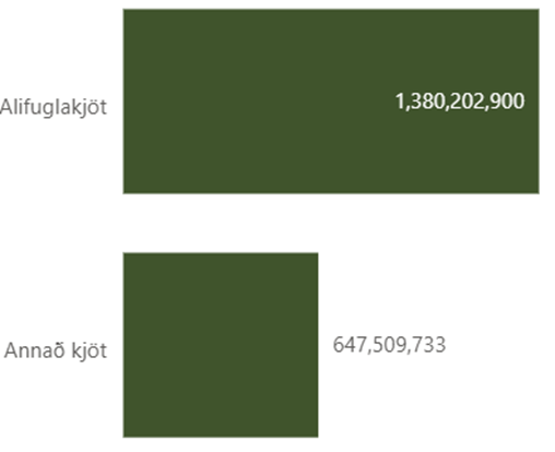 Mælaborðið veitir jafnframt góða yfirsýn á innflutningi á unnum kjötafurðum. Þannig má sem dæmi sjá að innflutningur á unnu alifuglakjöti sem flokkast undir 16. kafla tollskrár var rétt innan við 650 milljónir króna árið 2024 og innflutningur á óunnu alifuglakjöti sem flokkast undir 5. kafla tollskrár nam um 1,38 milljörðum króna. Hlutfall á unnu alifuglakjöti nam því um 32% af heildarinnflutningi á alifuglakjöti fyrir árið 2024 þegar horft er til CIF verðmætis í kr.