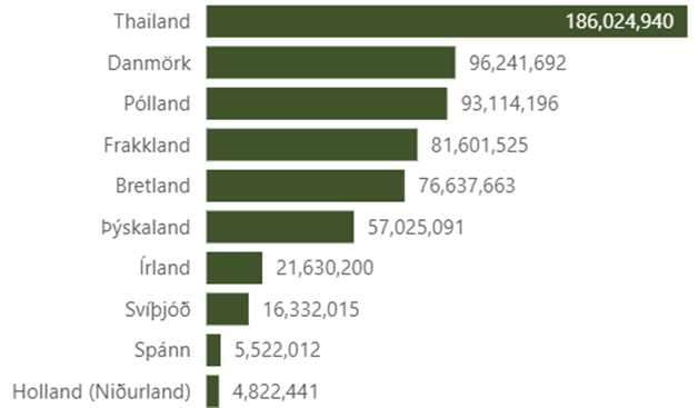 10 stærstu innflutningslönd á unnu alifuglakjöti árið 2024 – CIF verðmæti í kr.