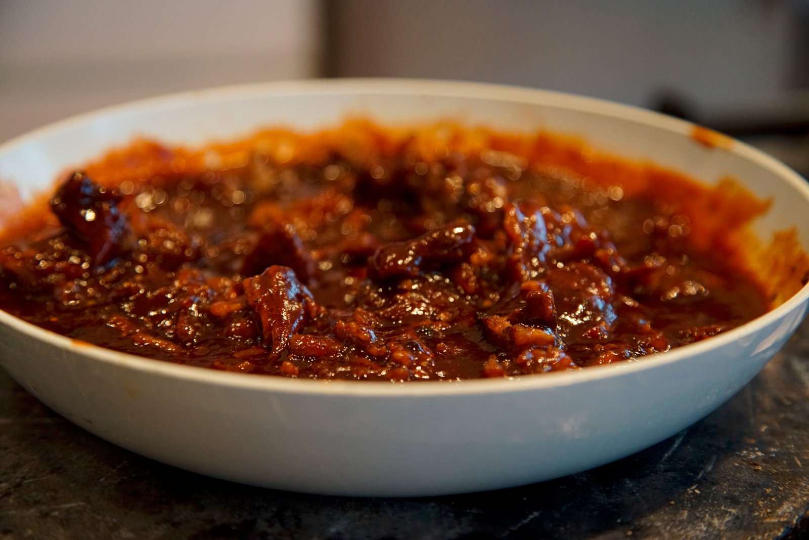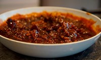 Hitið ofninn í 160° C. Setjið kjötið á pönnu, steikið vel á öllum hliðum. Kryddið með salti, pipar og cayenne pipar. Hyljið með álpappír og bakið í 4 klukkustundir.