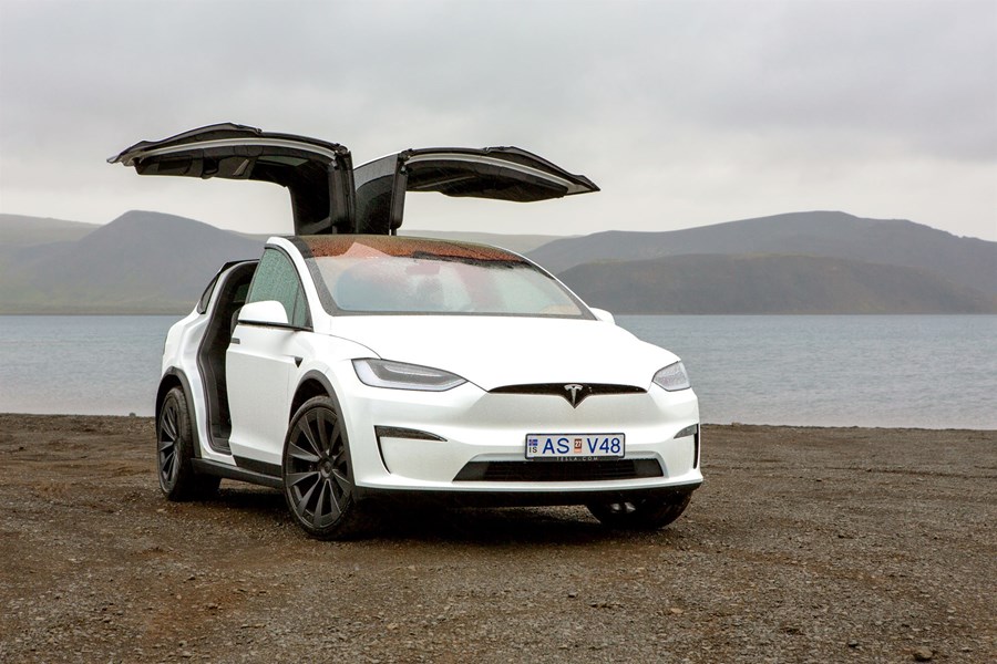 Tesla Model X er stór jepplingur með sæti fyrir allt að sjö farþega. Fálkahurðirnar að aftan eru góðar fyrir fólk sem vill sýnast og hestöflin 1.020 koma blóðinu á hreyfingu.