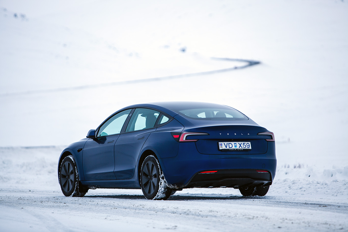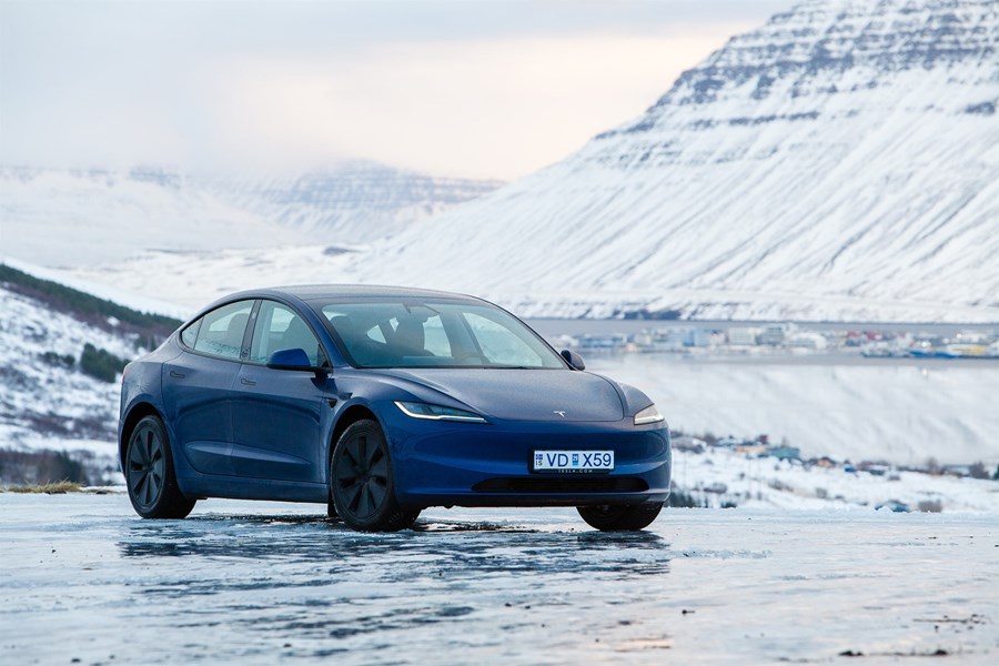 Bíllinn sem rætt er um hér var ekinn tæpa 1.500 kílómetra á nokkrum dögum í febrúar þegar blaðamaður hafði hann undir höndum. Á þeim tíma ók undirritaður vestur á Ísafjörð og aftur til Reykjavíkur í erfiðri vetrarfærð. Undir Teslunni voru naglalaus vetrardekk af bestu gerð frá Finnlandi.