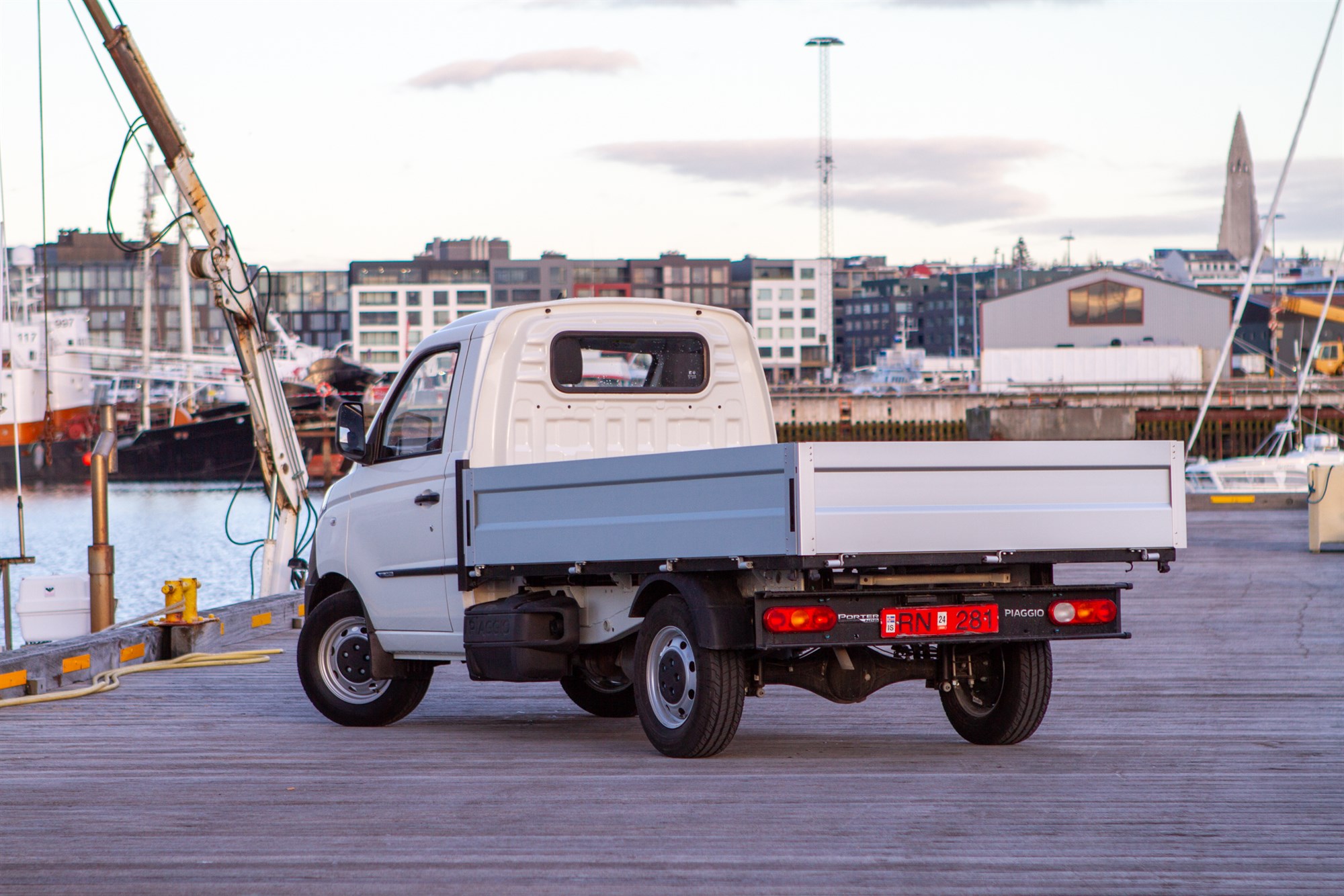 Aðalatriði þessa bíls er pallurinn og mætti hugsa um Piaggio Porter sem sjálfkeyrandi kerru. Ökutækið í þessum prufuakstri var minnsti bíllinn sem umboðið flytur inn, en samt sem áður með burðargetu upp á 950 kílógrömm. Þá er pallurinn 1.680 millimetra breiður og 2.800 millimetra langur, en fæst stærri. Skjólborðin eru fellanleg og allt það sem skiptir máli virðist vera sterkbyggt og einfalt í notkun.