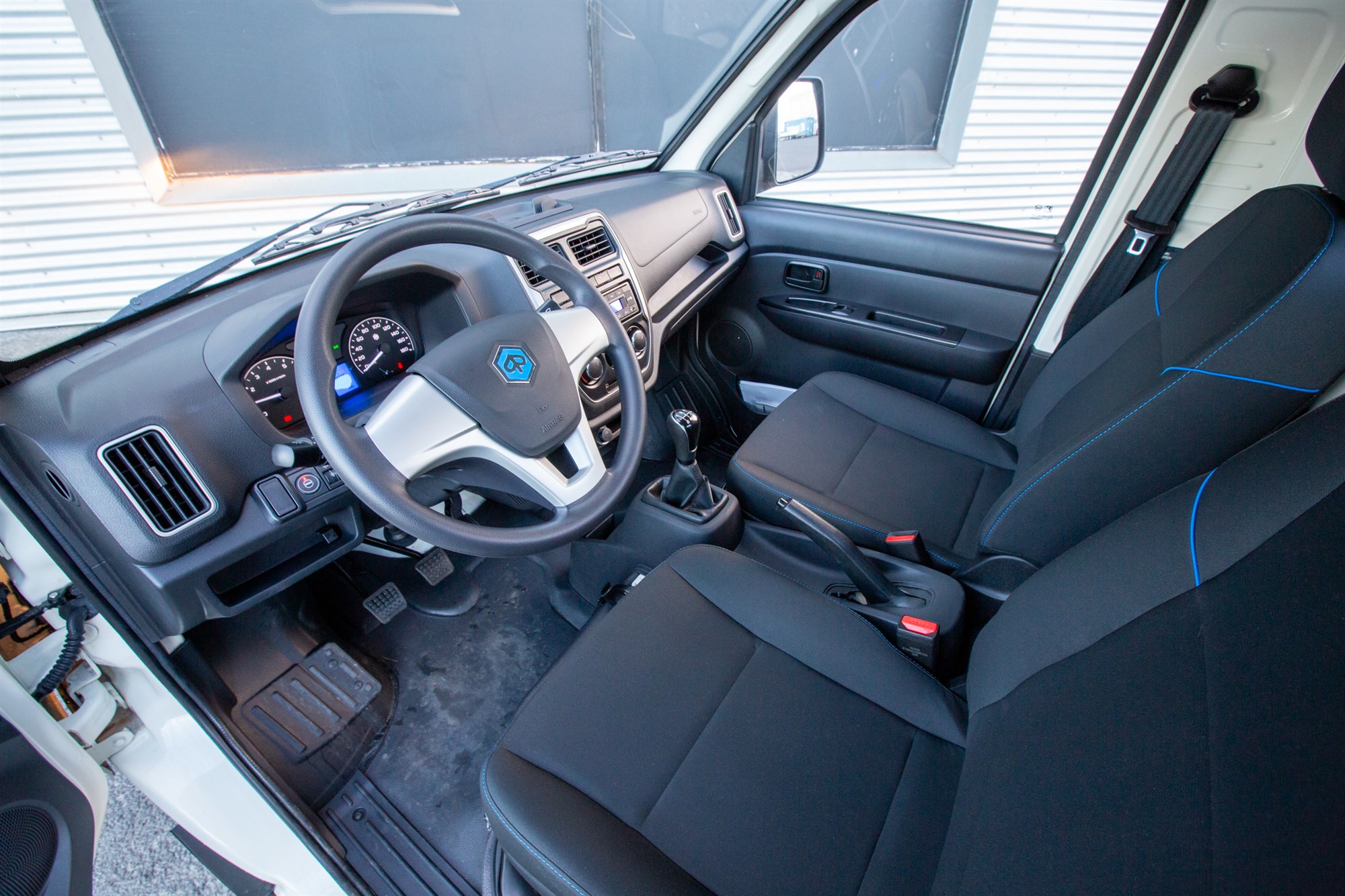 Þegar stigið er um borð þarf að byrja á því að beita nokkru afli til að loka á eftir sér hurðinni. Þá blasir við innrétting sem gæti þess vegna verið úr ökutæki frá tíunda áratug síðustu aldar. Alls staðar er grjóthart, dökkgrátt plast sem gefur frá sér tómahljóð við bank. Helsti munaðurinn í bílnum er útvarp, rafknúnar rúður og regnskynjari fyrir rúðuþurrkurnar.