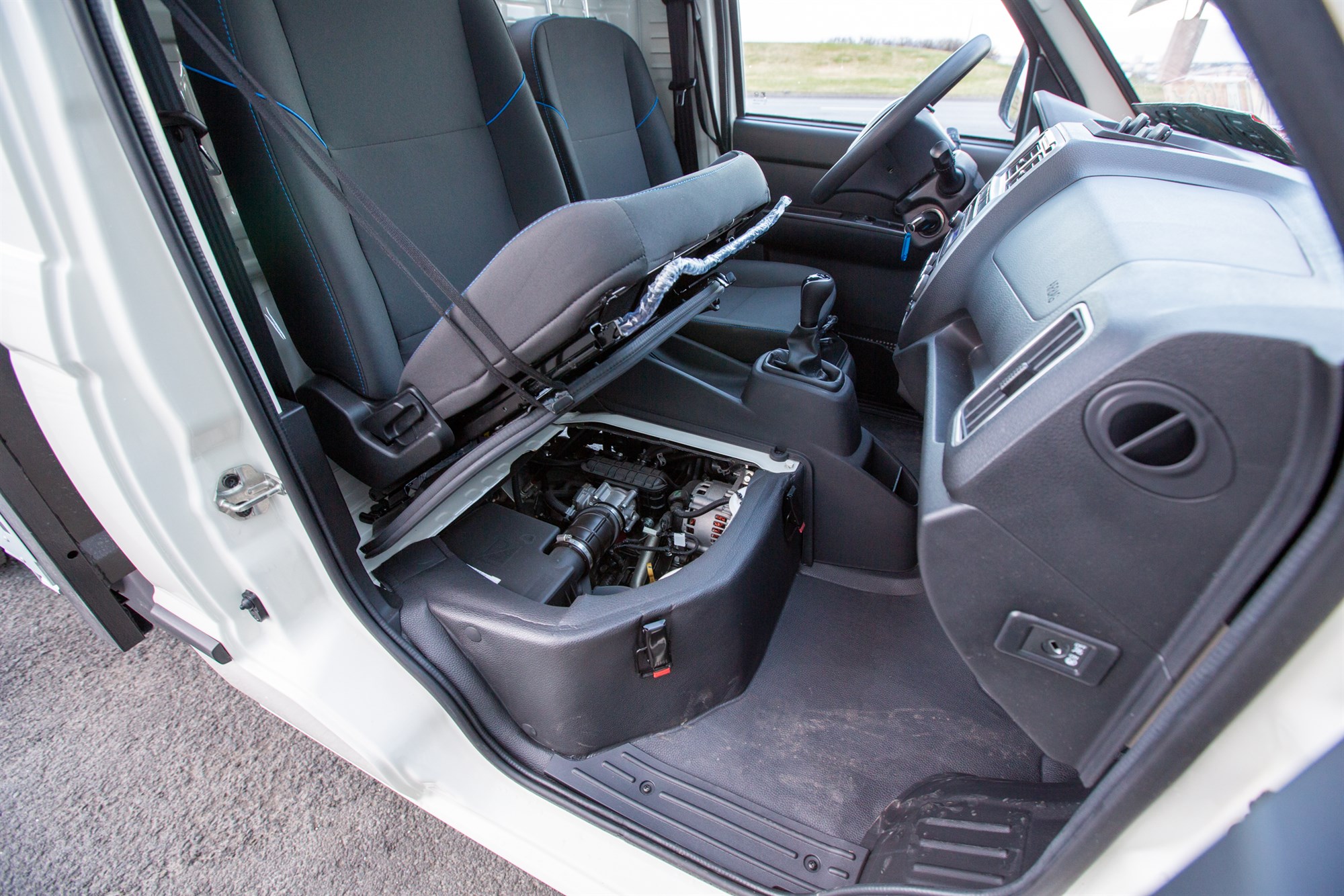 Mörgum gæti fundist undarlegt að vinnubíll sem þessi sé bensínknúinn, enda dísilvélar ráðandi í þessum flokki. Þessi orkugjafi meikar hins vegar fullkomlega sens fyrir ökutæki sem þetta.