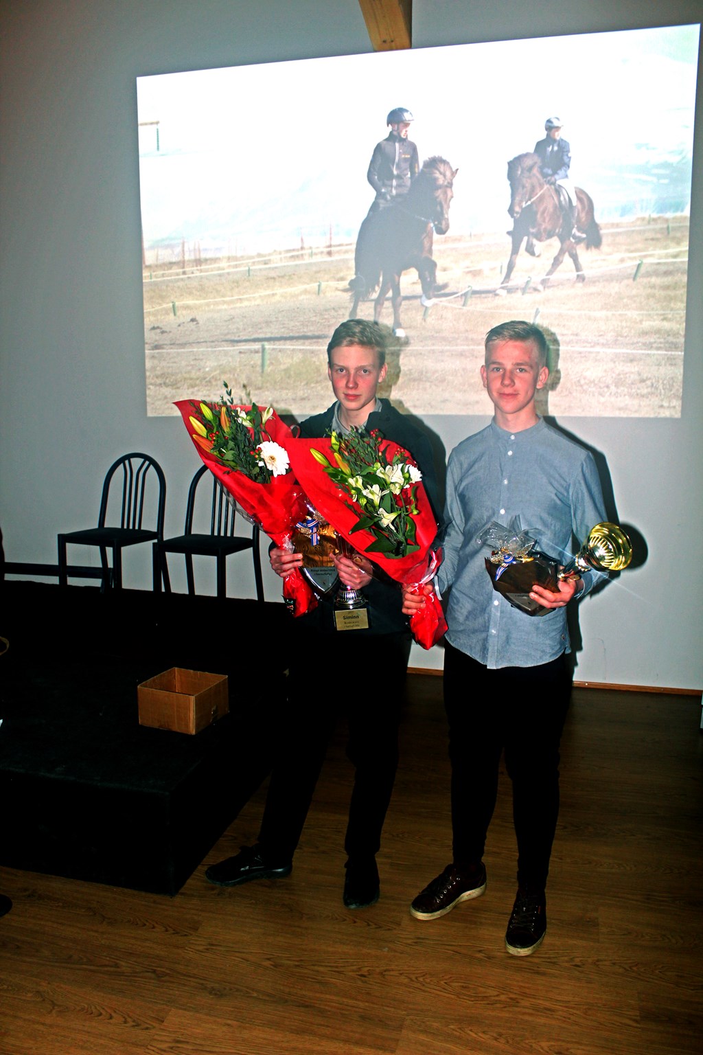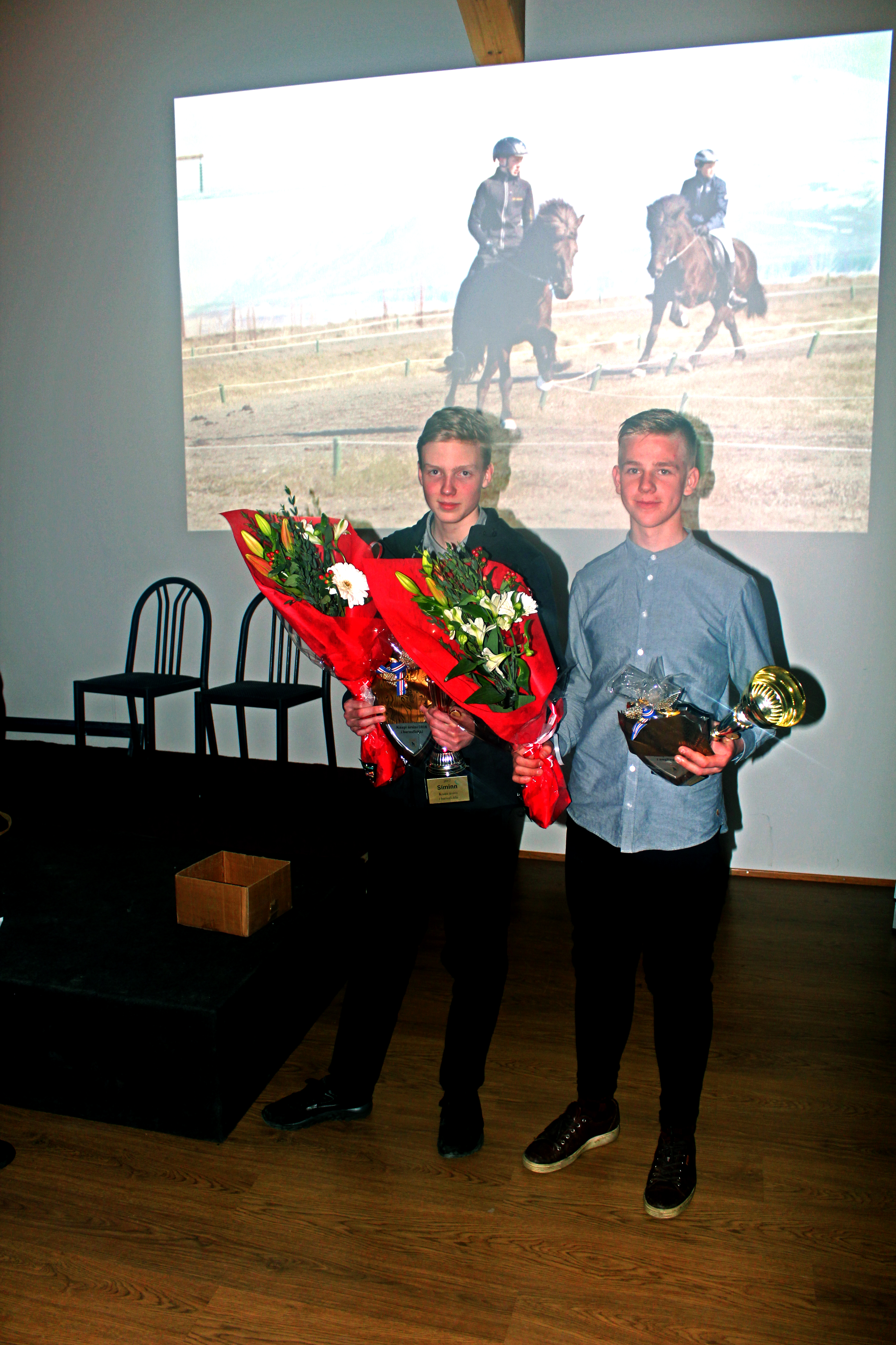 Sérstök veisla og uppskeruhátíð var fyrir börn og ungmenni, hér eru frá vinstri Steindór Óli Tobíasson, afreksknapi Léttis 2018 í barnaflokki og Egill Már Þórsson, afreksknapi Léttis 2018 í unglingaflokki.