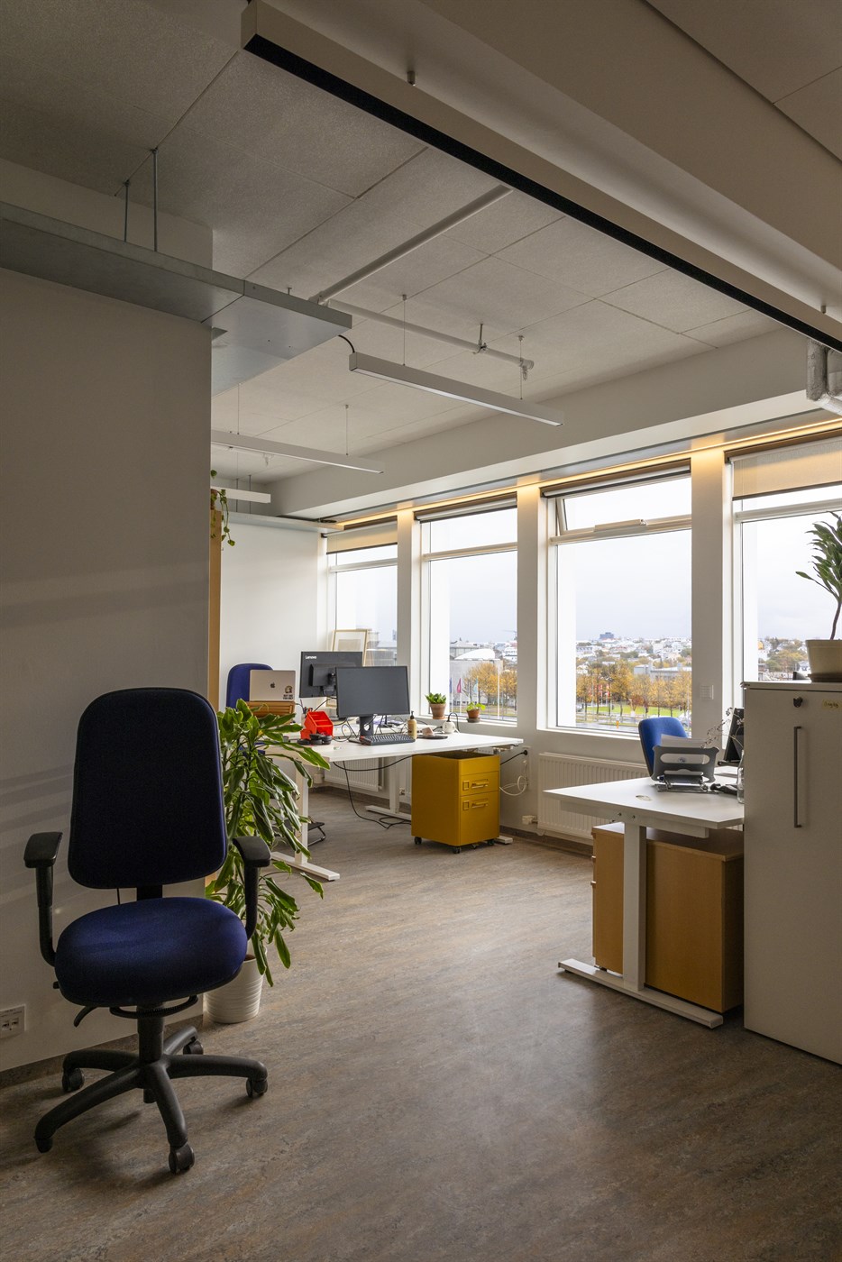 Á fjórðu hæð voru hótelherbergi innréttuð sem skrifstofur fyrir tvo eða fleiri starfsmenn.