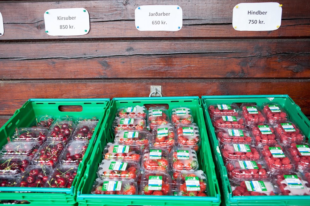 Sölubásinn á Kvistum var fallegur þegar blaðamaður var þar á ferð. Brómberin eru væntanleg á allra næstu dögum.
