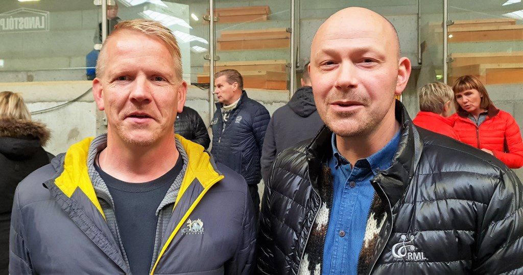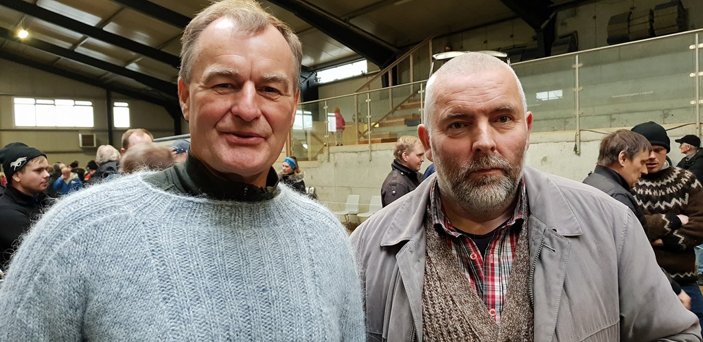 Hermann Árnason á Hvolsvelli (t.v.) og Guðmundur Viðarsson í Skálakoti voru kynnar dagsins, auk þess sem Hermann sá um að dæma hrútana og gimbrarnar.