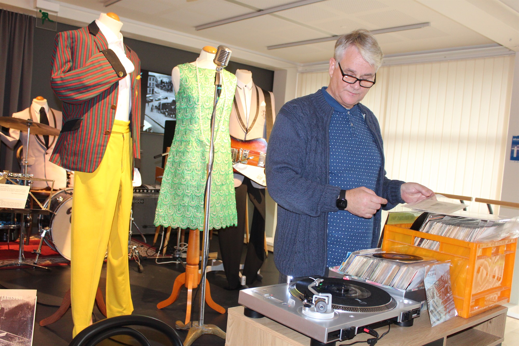Hér er Hörður Geirsson, sem vinnur á Minjasafninu, að þeyta skífum – gamall plötusnúður. Myndir / Margrét Þóra.