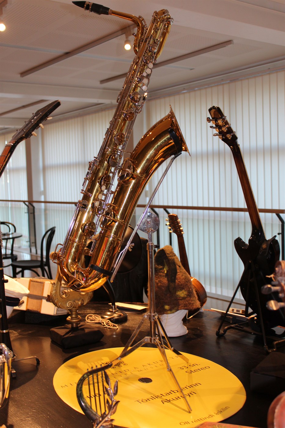 Hinn frægi saxófónn Finns Eydal prýðir sýninguna.