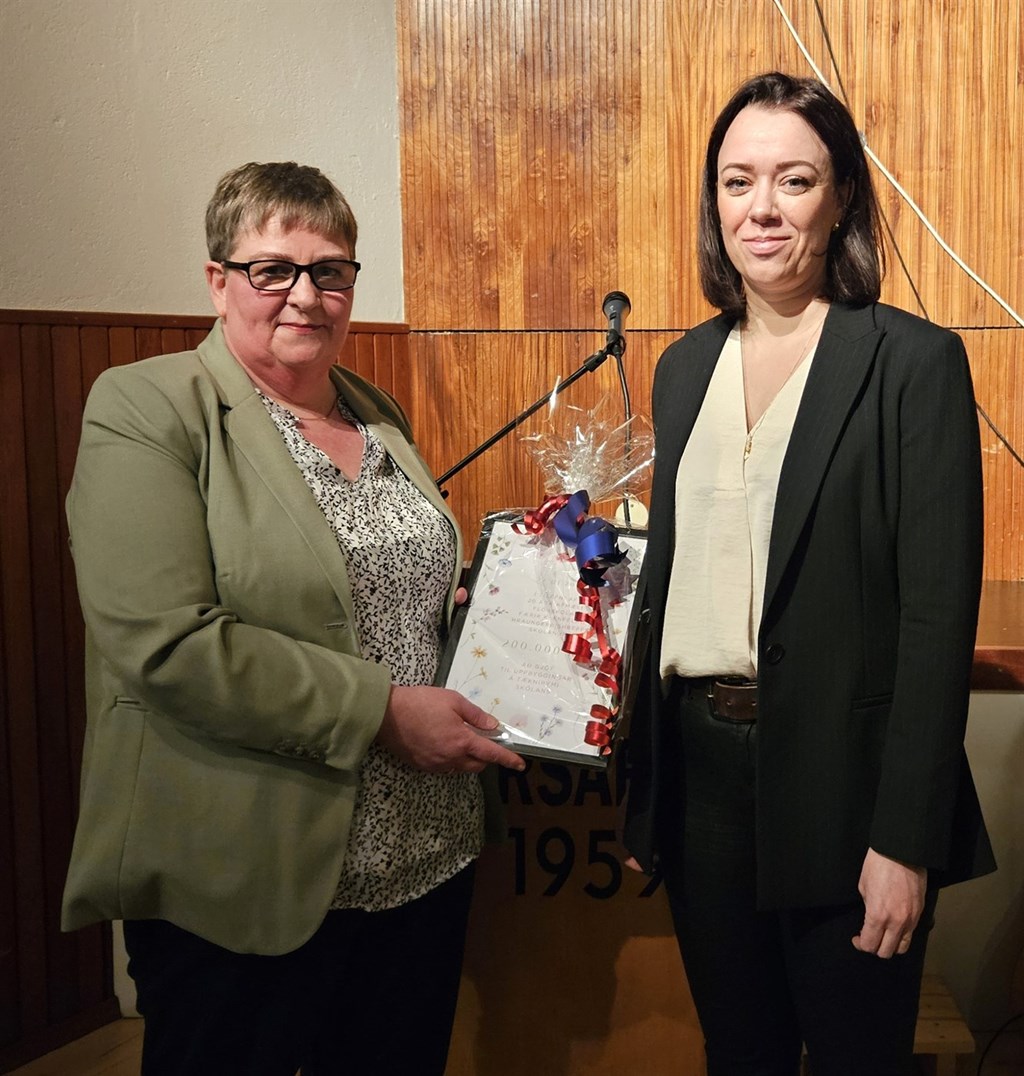 Þórunn Jónasdóttir skólastjóri og Berglind Björk Guðnadóttir, formaður Kvenfélags Hraungerðishrepps, en félagið færði skólanum 200 þúsund krónur að gjöf, sem nýta á til uppbyggingar á tæknirými skólans.